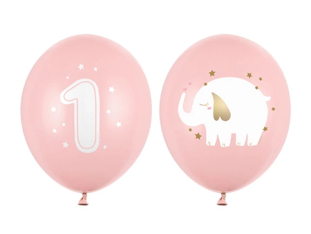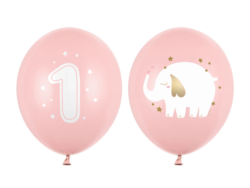 - Balony Strong Roczek z nadrukami, zestaw zawiera 2 wzory: pastelowy w kolorze Baby pink z kolorowym nadrukiem i pastelowy w kolorze Baby pink z białym nadrukiem, średnica ok. 30 cm. (1 op. / 50 szt.)