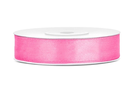 - Tasiemka satynowa w kolorze różowym, szerokość 12 milimetrów, długość 25 metrów. (1 szt. / 25 mb.)