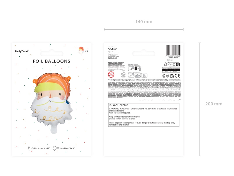 - Zestaw zawiera 5 balonów foliowych z wizerunkiem Mikołaja.