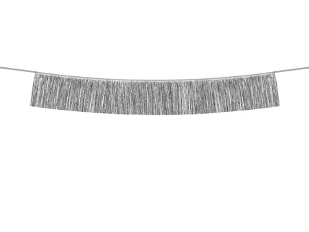 - Girlanda frędzle w kolorze srebrnym, wysokość ok. 20 cm, szerokość ok. 135 cm.