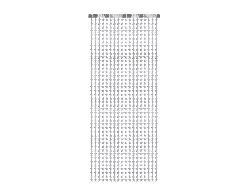 - Kurtyna - Gwiazdki wykonana z folii w kolorze srebrnym, wymiary: szerokość ok. 100 cm, długość ok. 245 cm