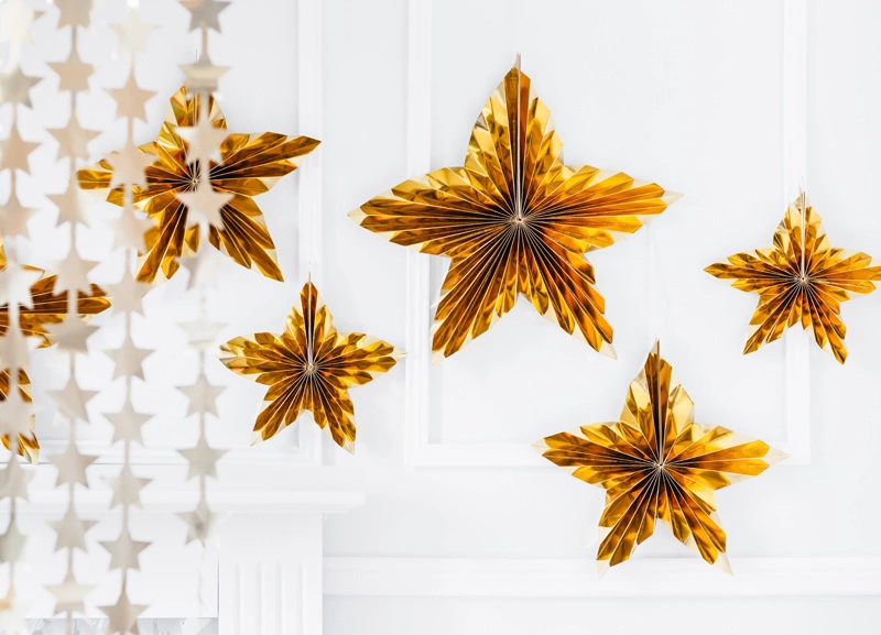 - Aby uzyskać jeszcze bardziej magiczny efekt, dodaj do kurtyny małe światełka LED. Światło odbijające się od srebrnych gwiazdek stworzy niesamowitą atmosferę.