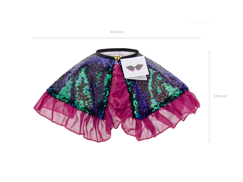 Przygotuj się na olśniewające chwile z naszym cekinowym kołnierzykiem! Ten niezwykły dodatek, stworzony z myślą o dzieciach w wieku 3-7 lat, z pewnością przyciągnie uwagę każdego małego uczestnika imprezy. Kołnierzyk zdobiony dwukolorowymi zielono-niebieskimi cekinami oraz fioletową falbanką to doskonały wybór na różnorodne okazje, od urodzin po Halloween.