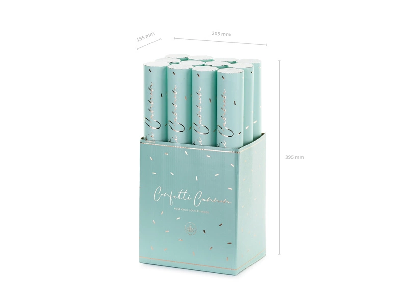 Chcesz dodać odrobinę magii i blasku do swojej imprezy? Nasza tuba strzelająca konfetti w kolorze różowego złota jest idealnym rozwiązaniem! Doskonała na wesela, wieczory panieńskie, urodziny, baby shower, Boże Narodzenie, Walentynki i wiele innych okazji. Tuba o długości 40 cm wypełniona jest bibułowym konfetti, które wspaniale rozświetli każdą chwilę.