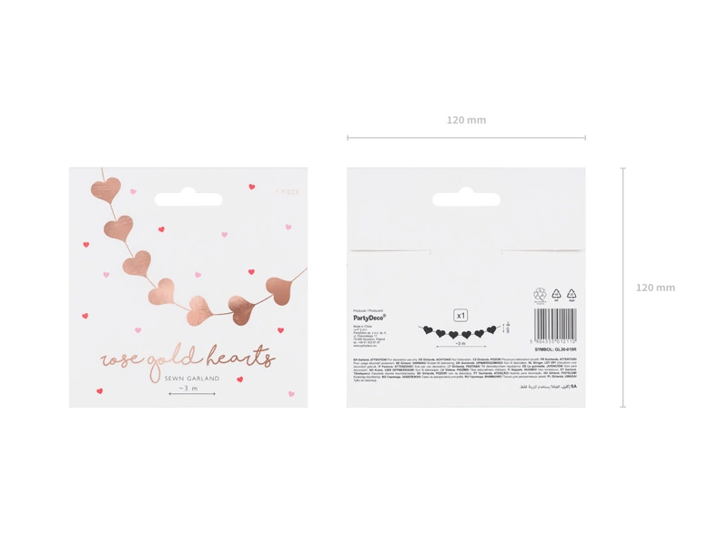 Wprowadź odrobinę czaru do swojej imprezy dzięki naszej wyjątkowej girlandzie w kształcie serc w kolorze różowego złota. Ta stylowa dekoracja o długości 3,5 metra i szerokości 8 cm, wykonana z wysokiej jakości papieru, doskonale sprawdzi się na różnorodne okazje, takie jak wesela, wieczory panieńskie, urodziny, baby shower, Walentynki i wiele innych.