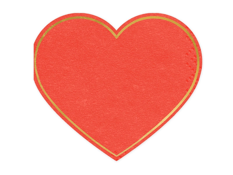 - Serwetki papierowe w kształcie serca w kolorze czerwonym ze złotym nadrukiem, wymiary po rozłożeniu ok. 28.5 x 25 cm, wymiary po złożeniu ok. 14.3 x 12.5 cm. (1 op. / 20 szt.)
