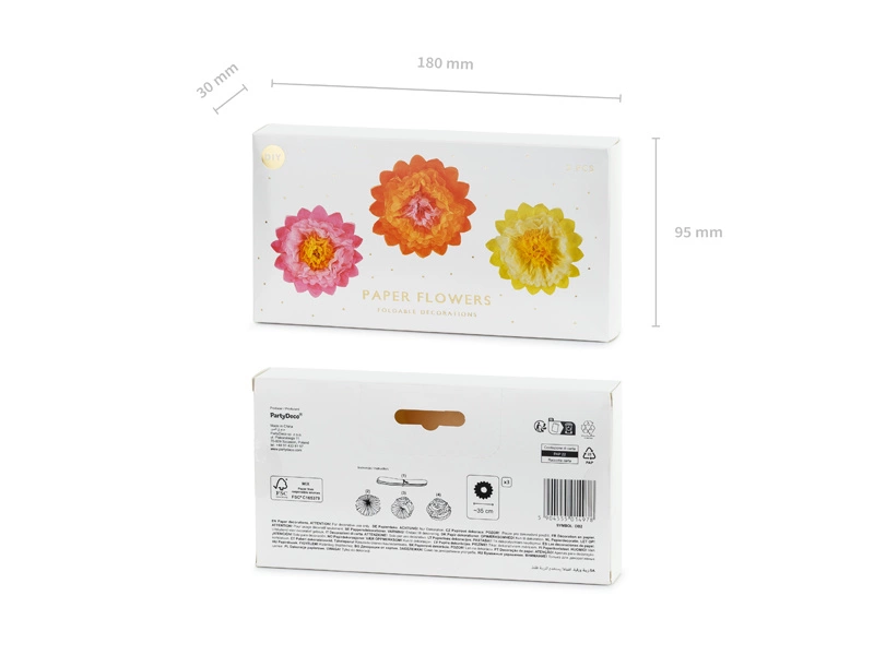 - Dekoracje bibułowe Kwiaty, mix kolorów, zestaw zawiera 3 sztuki (każda w innym kolorze), wymiar po rozłożeniu ok. 35 cm. (1 op. / 3 szt.)