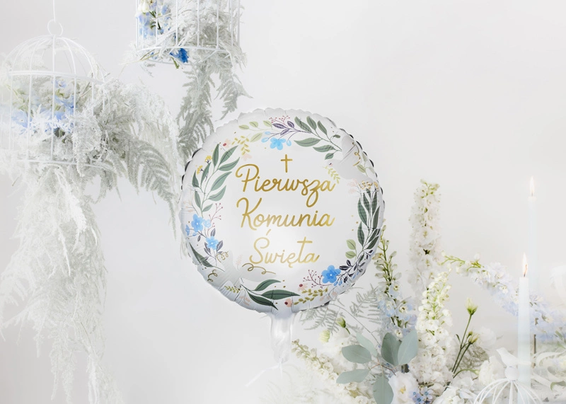 Uczcij Pierwszą Komunię Świętą w niezapomniany sposób z naszym eleganckim balonem foliowym! Ten stylowy balon w różnych kolorach doskonale podkreśli wyjątkowy charakter tego ważnego dnia. Idealny do dekoracji sali, stołu lub jako uzupełnienie prezentu.