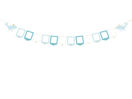 - Girlanda na zdjęcia - Wieloryb, mix kolorów, wymiar flagietek ok. 10.5 x 15 cm. Długość sznurka ok. 3 m.