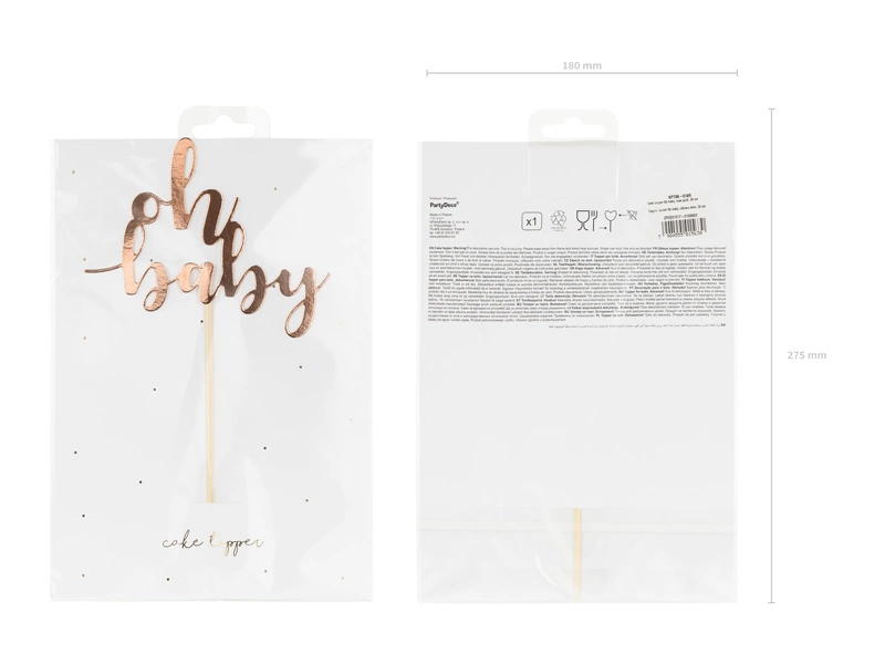 Chcesz dodać odrobinę magii do swojego baby shower? Nasz topper na tort "Oh baby" w eleganckim kolorze różowego złota to idealny wybór! Ten topper o wysokości 25 cm nie tylko podkreśli wyjątkowość Twojej imprezy, ale także zachwyci wszystkich gości swoim stylowym wyglądem.