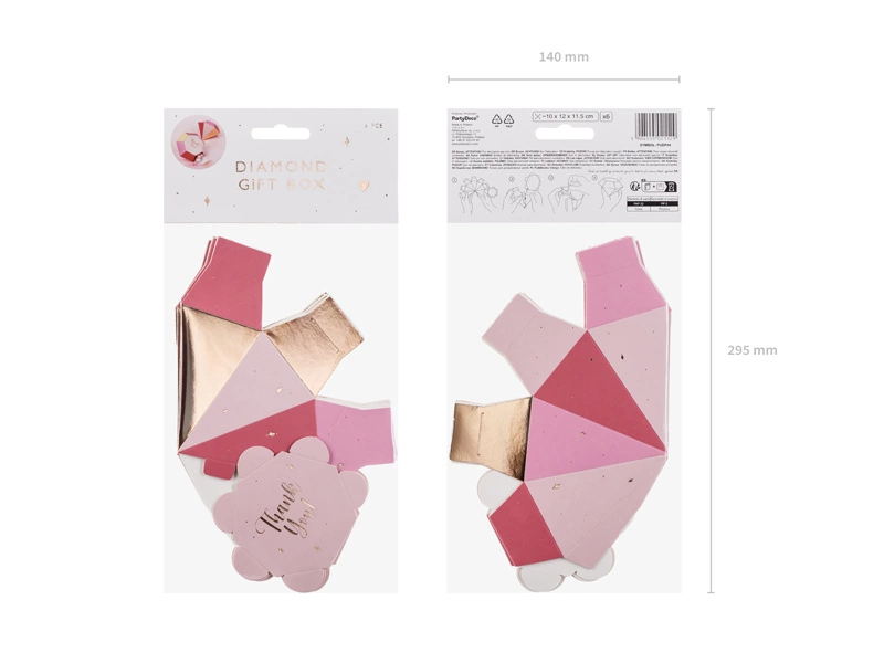 - Pudełka Diamenty, mix kolorów, wymiary po złożeniu ok. 10 x 12 x 11.5 cm. (1 op. / 6 szt.)