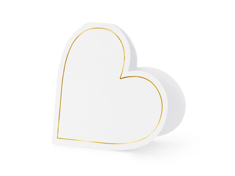 - Wizytówki na stół Serca w kolorze białym ze złotym nadrukiem, wymiary ok. 15.7 x 22 cm. (1 op. / 10 szt.)