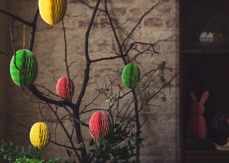 - Dekoracja papierowa honeycomb Jajko w kolorze różowym, wysokość ok. 12 cm.