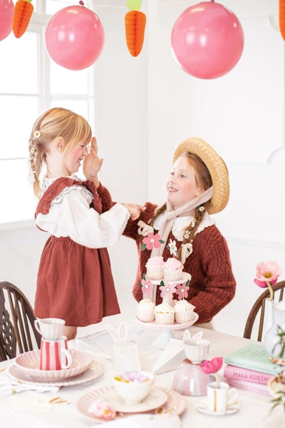 - Stwórz girlandę balonową, łącząc balony w różnych odcieniach różu i bieli.