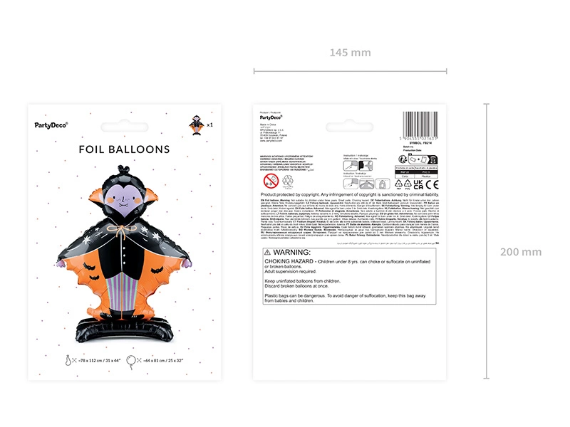 Wprowadź odrobinę tajemniczości i mrocznego uroku na swoją imprezę dzięki naszemu stojącemu balonowi foliowemu Dracula! Idealny na Halloween, wieczory tematyczne czy urodziny, ten balon z pewnością przyciągnie uwagę i doda wyjątkowego klimatu każdemu wydarzeniu. Po napompowaniu osiąga wymiary 64 x 81 cm, co czyni go imponującą dekoracją, która z pewnością zrobi wrażenie na Twoich gościach.
