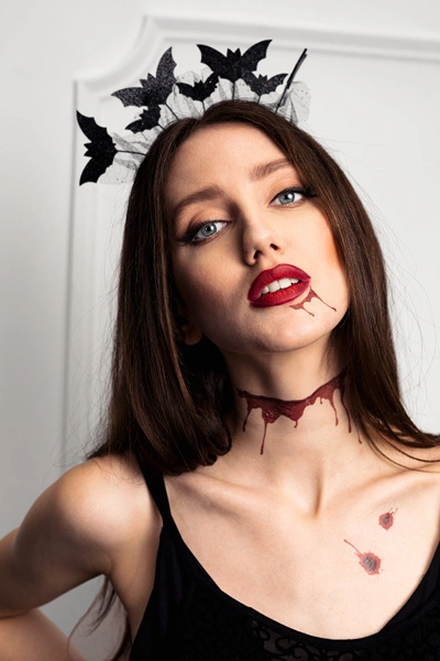 Pro Tip: Aby uzyskać jeszcze bardziej spektakularny efekt, połącz opaskę z makijażem w stylu wampira lub czarownicy. Dodaj sztuczne kły lub ciemną szminkę, aby dopełnić mroczny wygląd.