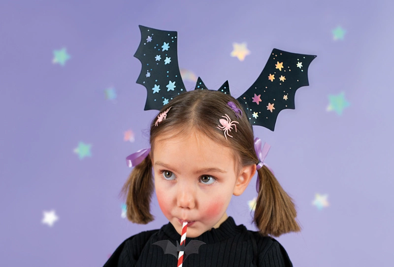 Wprowadź odrobinę tajemniczości i elegancji na swoją imprezę dzięki naszemu zestawowi 4 opasek w kształcie nietoperzy! Idealne na Halloween, wieczory panieńskie czy tematyczne urodziny, te czarne opaski z holograficznym nadrukiem z pewnością przyciągną uwagę i dodadzą wyjątkowego charakteru każdemu wydarzeniu.