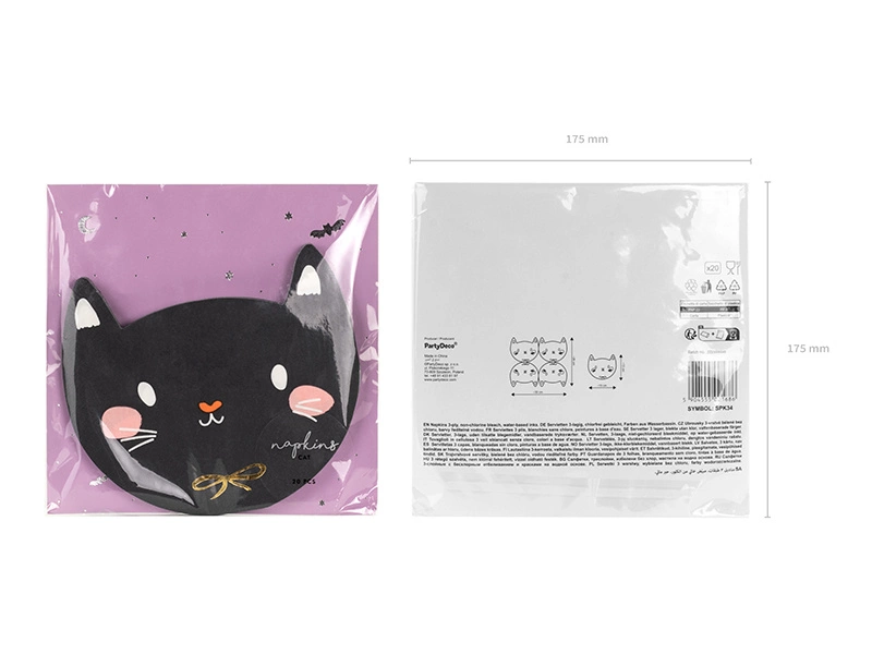 - Serwetki papierowe Kotek w kolorze czarnym z kolorowym nadrukiem, wymiary po rozłożeniu ok. 30 x 26 cm, wymiary po złożeniu ok. 15 x 13 cm. (1 op. / 20 szt.)