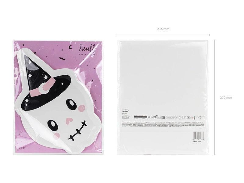 - Talerzyki papierowe Czaszka, mix kolorów, wymiary ok. 18 x 27 cm. (1 op. / 6 szt.)