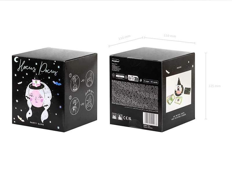 - Gra karciana "Zgadnij co to?" zawiera 6 czapek czarownic na gumce oraz 40 kart z ilustracjami. Liczba graczy: 2 - 6. (1 op. / 6 szt.)