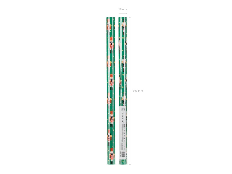 Wprowadź odrobinę magii do swoich prezentów dzięki papierowi do pakowania z motywem Dziadka do orzechów! Idealny na świąteczne upominki, ten zielony papier z kolorowym nadrukiem sprawi, że każdy prezent będzie wyglądał wyjątkowo. Wymiary papieru to 70 x 200 cm, co pozwala na zapakowanie nawet większych przedmiotów.