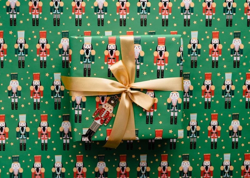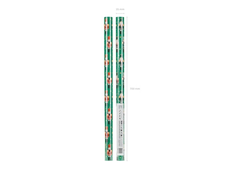 - Papier do pakowania - Dziadek do orzechów w kolorze zielonym z kolorowym nadrukiem, wymiary ok. 70 x 200 cm.