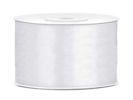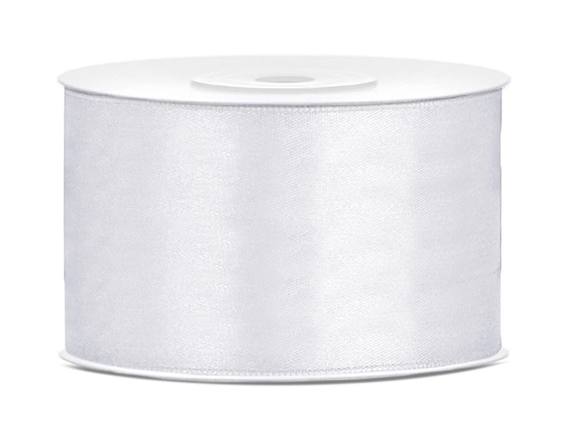 - Tasiemka satynowa w kolorze białym, szerokość 38 milimetrów, długość 25 metrów. (1 szt. / 25 mb.)