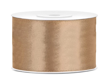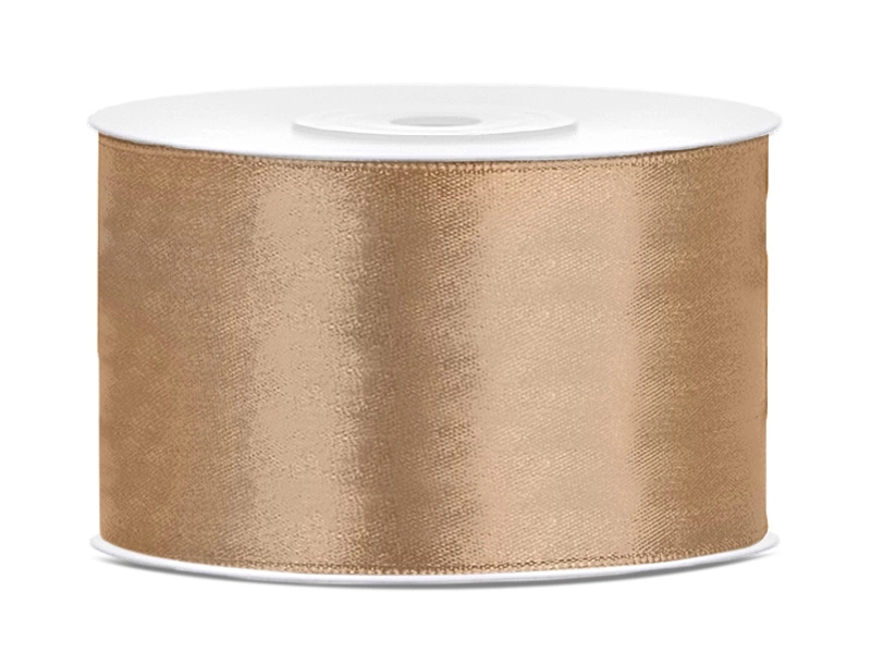 - Tasiemka satynowa w kolorze jasnozłotym, szerokość 38 milimetrów, długość 25 metrów. (1 szt. / 25 mb.)