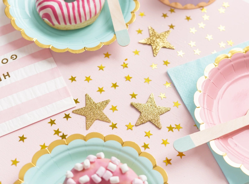Rozświetl każdą uroczystość dzięki naszym złotym konfetti w kształcie gwiazdek! Doskonałe na wesela, wieczory panieńskie, urodziny, Halloween, baby shower, Boże Narodzenie, Walentynki i wiele innych okazji. Te małe, lśniące gwiazdki o wymiarach 10 mm z pewnością przyciągną wzrok i dodadzą magii każdemu wydarzeniu.