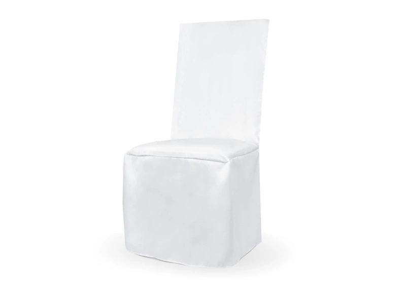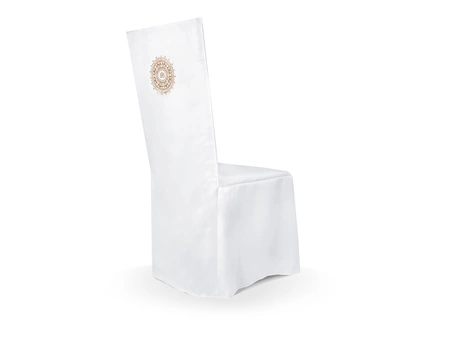 • Pokrowiec komunijny na krzesło z satyny w kolorze białym, bez zakładek, z nadrukowanym emblematem IHS.