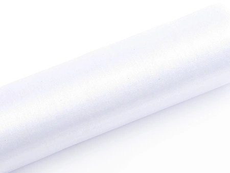 - Organza Gładka w kolorze białym, wymiary 0,16x9 metrów. (1 szt. / 9 mb.)