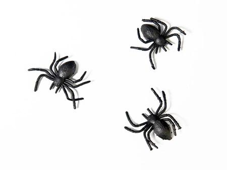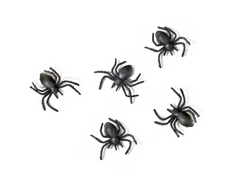 - Pająki plastikowe w kolorze czarnym, wymiary 3x3 centymetry. (1 op. / 10 szt.)