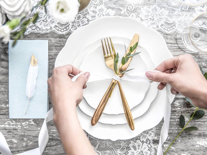 - Użyj tasiemki do ozdabiania stołów, krzeseł, bukietów kwiatów czy prezentów.