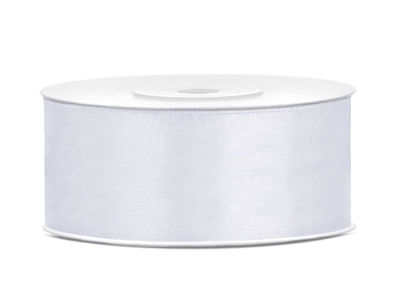 - Tasiemka satynowa w kolorze białym, szerokość 25 milimetrów, długość 25 metrów. (1 szt. / 25 mb.)