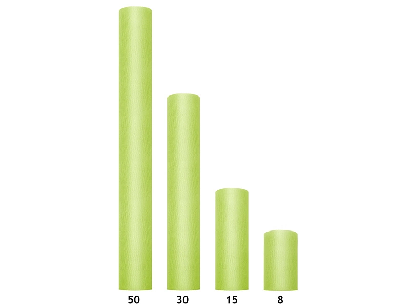 - Tiul gładki w kolorze jasnozielonym, na szpulce, wymiary 0,15x9 metrów. (1 szt. / 9 mb.)