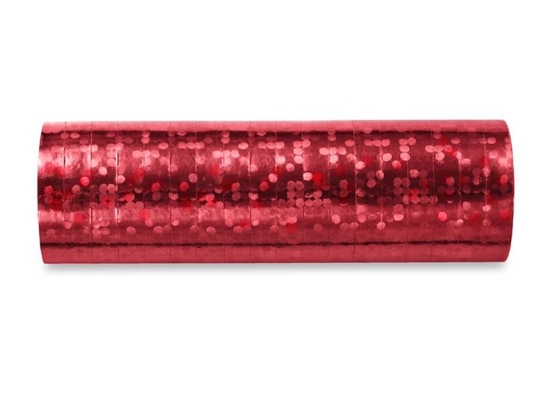 - Serpentyny holograficzne w kolorze czerwonym o długości 3,8 metra. (1 op. / 18 szt.)