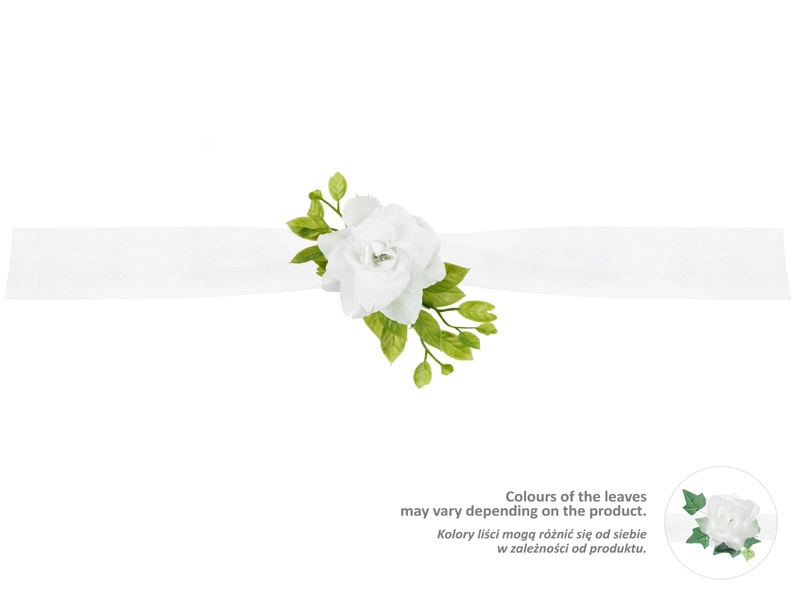 - Girlanda z tiulu w kolorze białym, z białymi różyczkami i zielonymi listkami, długość 1,70 metra.