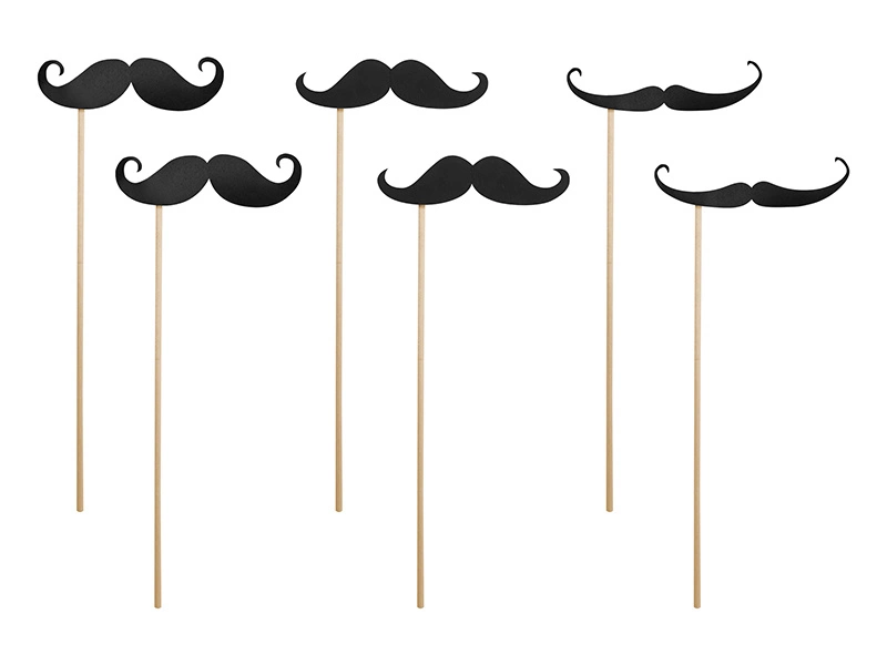 - Karteczki na patyczku Wąsy, długość około 24 centymetry. Opakowanie zawiera 3 wzory wąsów. (1 op. / 6 szt.)