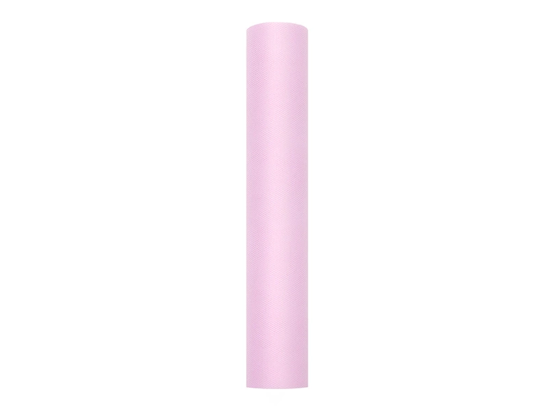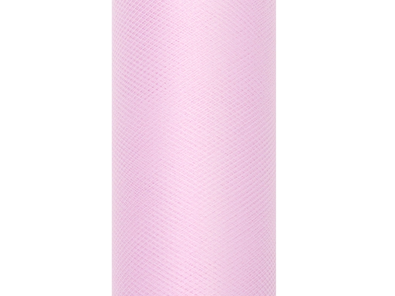 - Tiul gładki w kolorze jasnoróżowym, na szpulce, wymiary 0,30x9 metrów.