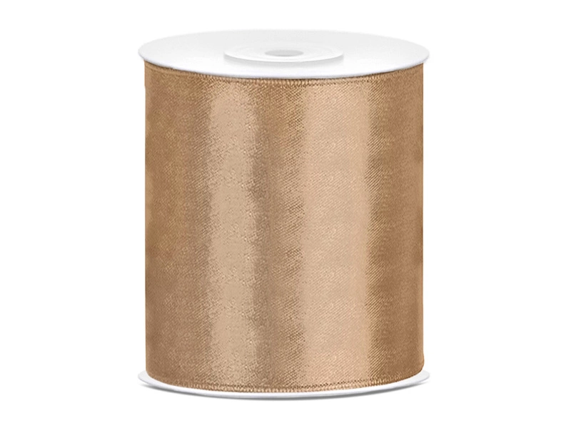Kolor: Jasnozłoty Rozmiar: Szerokość 100 mm, długość 25 m Materiał: Satyna