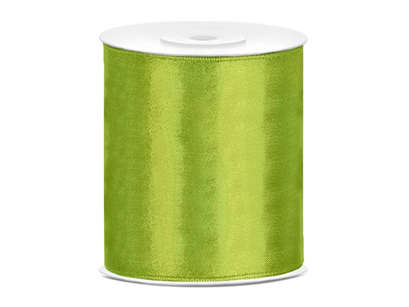 - Tasiemka satynowa w kolorze zielonego jabłuszka, szerokość 100 milimetrów, długość 25 metrów.