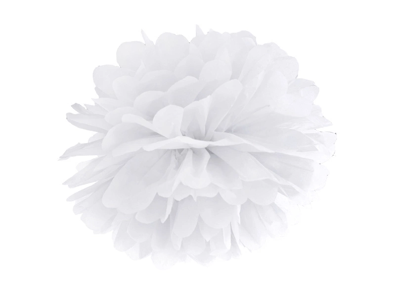 - Pompon bibułowy w kolorze białym, rozmiar 25 centymetrów.