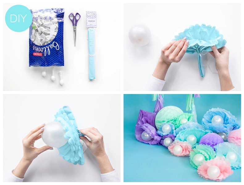 - Pompon bibułowy w kolorze błękitnym, rozmiar 25 centymetrów.