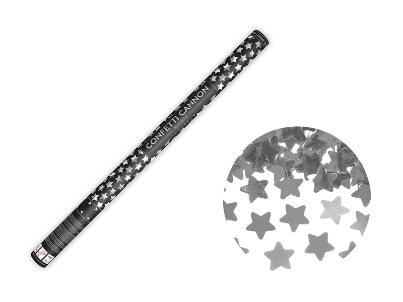 - Tuba strzelająca metalicznymi gwiazdkami w kolorze srebrnym, długość 80 centymetrów.