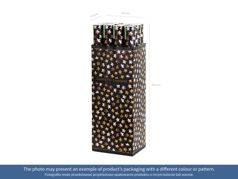 Rozświetl każdą uroczystość z naszą tubą strzelającą metalicznymi gwiazdkami w kolorze złotym! To doskonały wybór na wesela, wieczory panieńskie, urodziny, Halloween, baby shower, Boże Narodzenie, Walentynki i wiele innych okazji. Tuba o długości 60 cm gwarantuje spektakularny efekt, który oczaruje wszystkich gości.