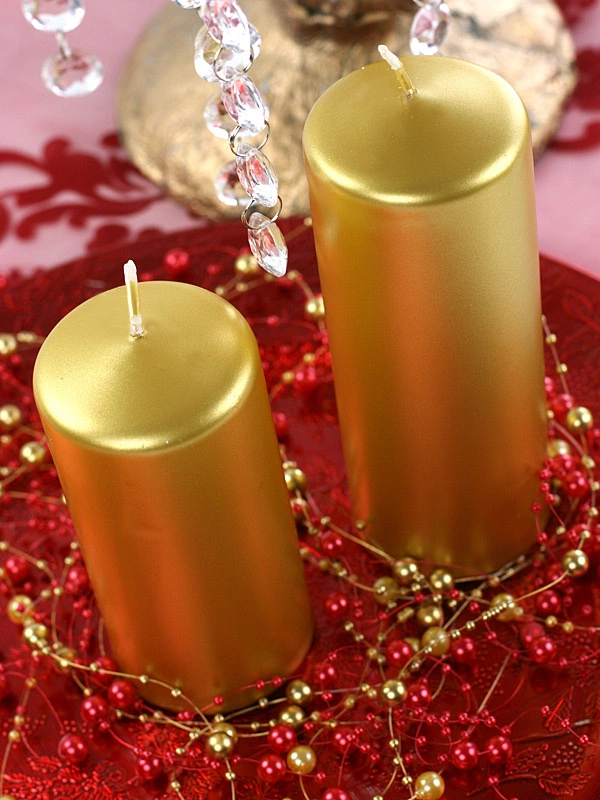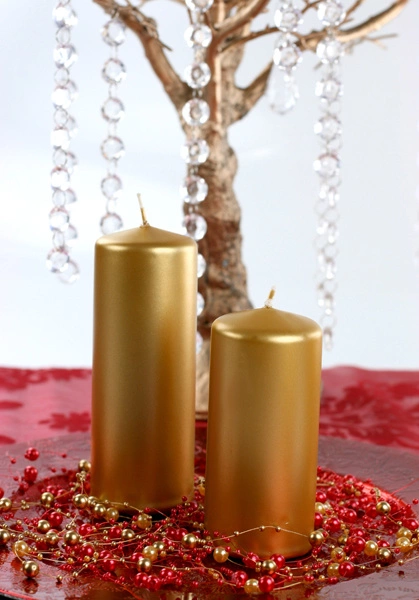 - Świeca klubowa metalizowana w kolorze złotym, wysokość 12 centymetrów, średnica 6 centymetrów. Czas palenia 1 sztuki około 20 godzin. (1 op. / 6 szt.)