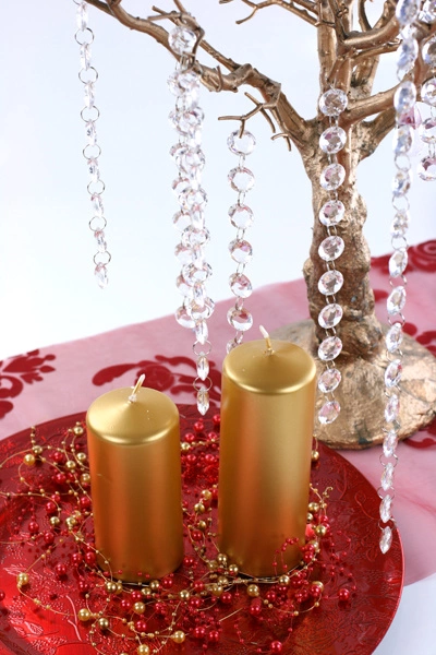 - Ustaw świece na stole jako centralny element dekoracyjny, aby przyciągnąć wzrok gości.