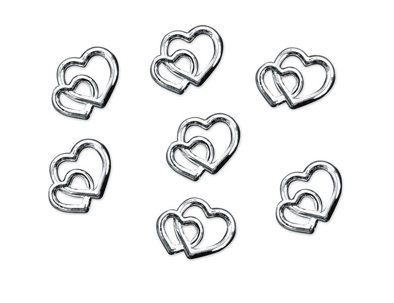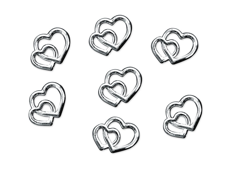Wprowadź odrobinę magii i elegancji do swojej imprezy dzięki srebrnym aplikacjom w kształcie serduszek! Te urocze dekoracje o rozmiarze 10 mm doskonale sprawdzą się na różnorodne okazje, takie jak wesela, wieczory panieńskie, urodziny, Halloween, baby shower, Boże Narodzenie czy Walentynki. W opakowaniu znajdziesz 25 sztuk, co pozwala na kreatywne i wszechstronne zastosowanie.