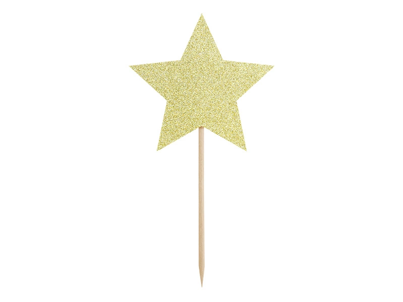 - Dekoracje do muffinek wykonane z papieru w kształcie gwiazdek, w kolorze złotym, wymiary ok. 11,5 cm. (1 op. / 6 szt.)