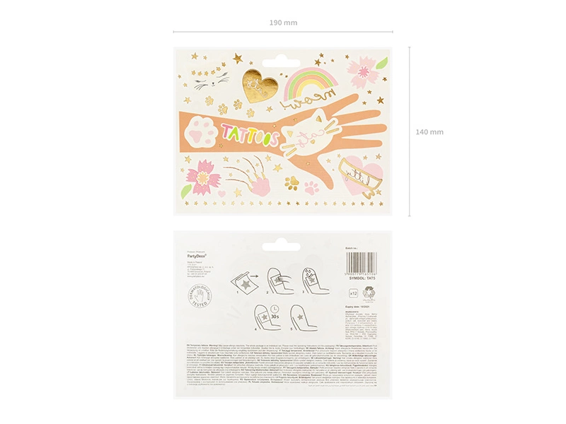 Wzbogać swoją imprezę o odrobinę uroku i zabawy z naszymi zmywalnymi tatuażami z motywem kotków. Te urocze tatuaże są idealne na każdą okazję i z pewnością wywołają uśmiech na twarzach Twoich gości. Zamów już teraz i spraw, aby Twoja impreza była niezapomniana!